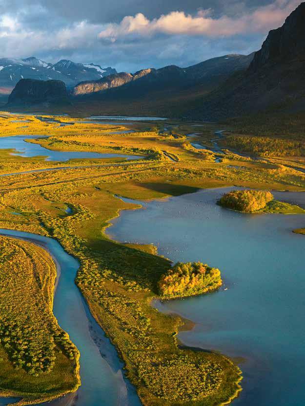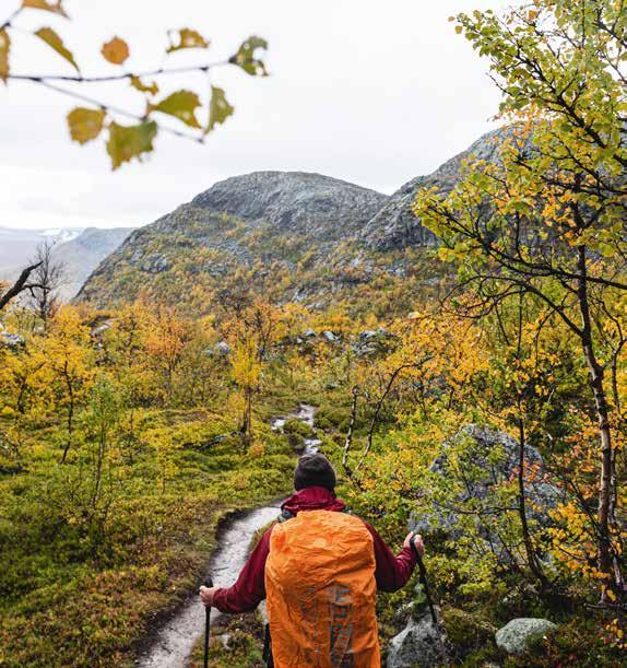 must-see. Hiking routes for day trips are found from the Way West out to many sights in the national park. Stora Sjöfallet Mountain Lodge is a great accommodation, just like the famous Saltoluokta mountain station on Kungsleden, the King’s Trail.