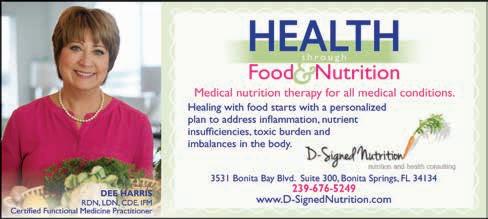 Location: 3531 Bonita Bay Blvd., Ste. 300. For appointments and more information, call 239-676-5249, email Jennifer@D-SignedNutrition.com or visit D-SignedNutrition. com. See ad, page 17.