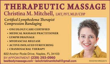 Location: 501 Goodlette Rd. N., Ste. D101. For more information or arrange for a consultation or a session, call 239-298-6969, email Cynchronisity@gmail.com or visit Cynchronisity.com. See Resource Guide listing, page 46.