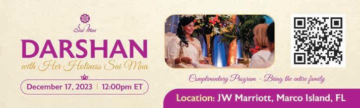 Life will present a Global Unity Gathering, featuring interacting and engaging with Her Holiness Sai Maa, from December 14 to 17 at the JW Marriott Marco Island Beach Resort. As a worldrenowned spiritual master, healer and humanitarian, she will bring her unique fusion of Eastern spiritual wisdom, Western therapeutic knowledge and energetic mastery through teaching sessions and deep energetic work for the personal and global awakening of participants.