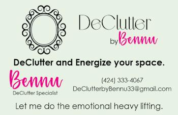 Call Bennu Zamora at 424-333-4067 or email DeClutterbyBennu33@ gmail.com. See ad, page 26.
