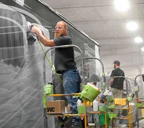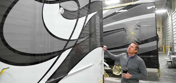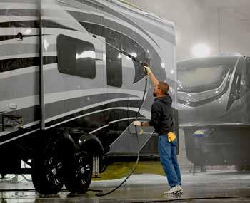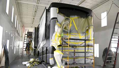 Patrick Industries’ Precision Painting Group paints motorhomes and fifth wheels away from OEMs’ plants before returning them to the manufacturers for final finish.