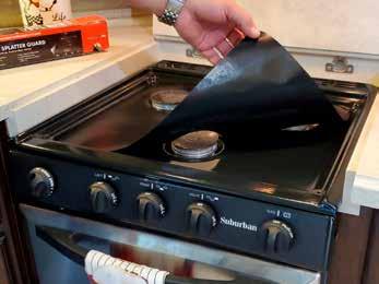 Stove Wrap’s stove top and oven protectors help RVers eliminate cleanup after grilling. The reusable protectors can be cut to fit any gas/electric BBQ, stove, oven or air fryer. Stove Wrap is heat resistant up to 550 degrees Fahrenheit. The protectors are nonstick, washable and nonflammable. Stove Wrap protects cooking surfaces from drips, spills and scuffs/scratches.