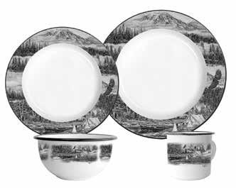 Utica Cutlery Enamelware sets are available in five different wildlife scenes. The scenes were created by wildlife artist Jim Tosrud. The five sets are Eagle Camp, Elk, Deer, Turkey and Walleye. Four-piece enamelware sets include one dinner plate, one pasta plate, one bowl and one large mug. The 16-piece sets include four of each piece. All products are double enameled.