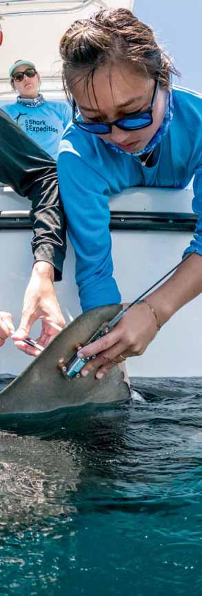 During the weeklong expedition in August 2021, researchers from the Dutch Caribbean Nature Alliance, with support from WWF-Netherlands, caught and analyzed a total of 16 tiger sharks; of those, one was pregnant. They also satellite-tagged five sharks so they could track the animals’ migration routes.