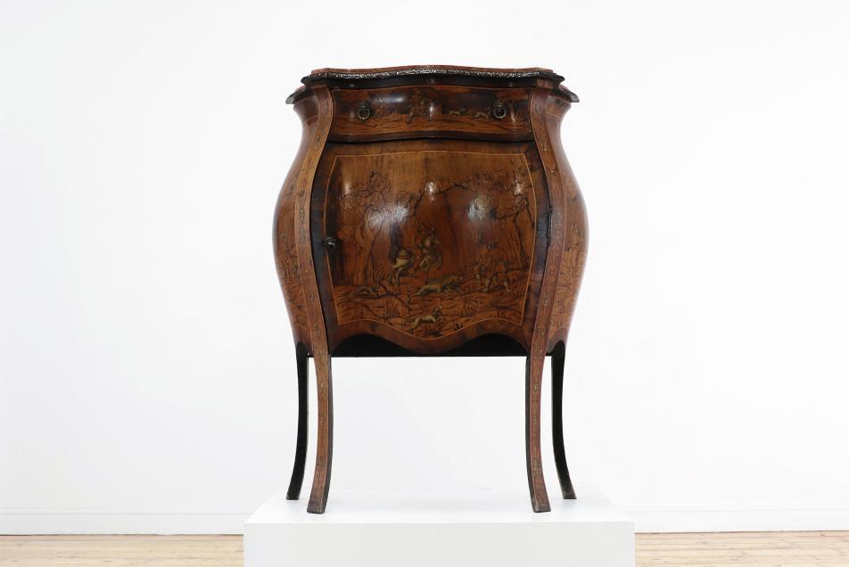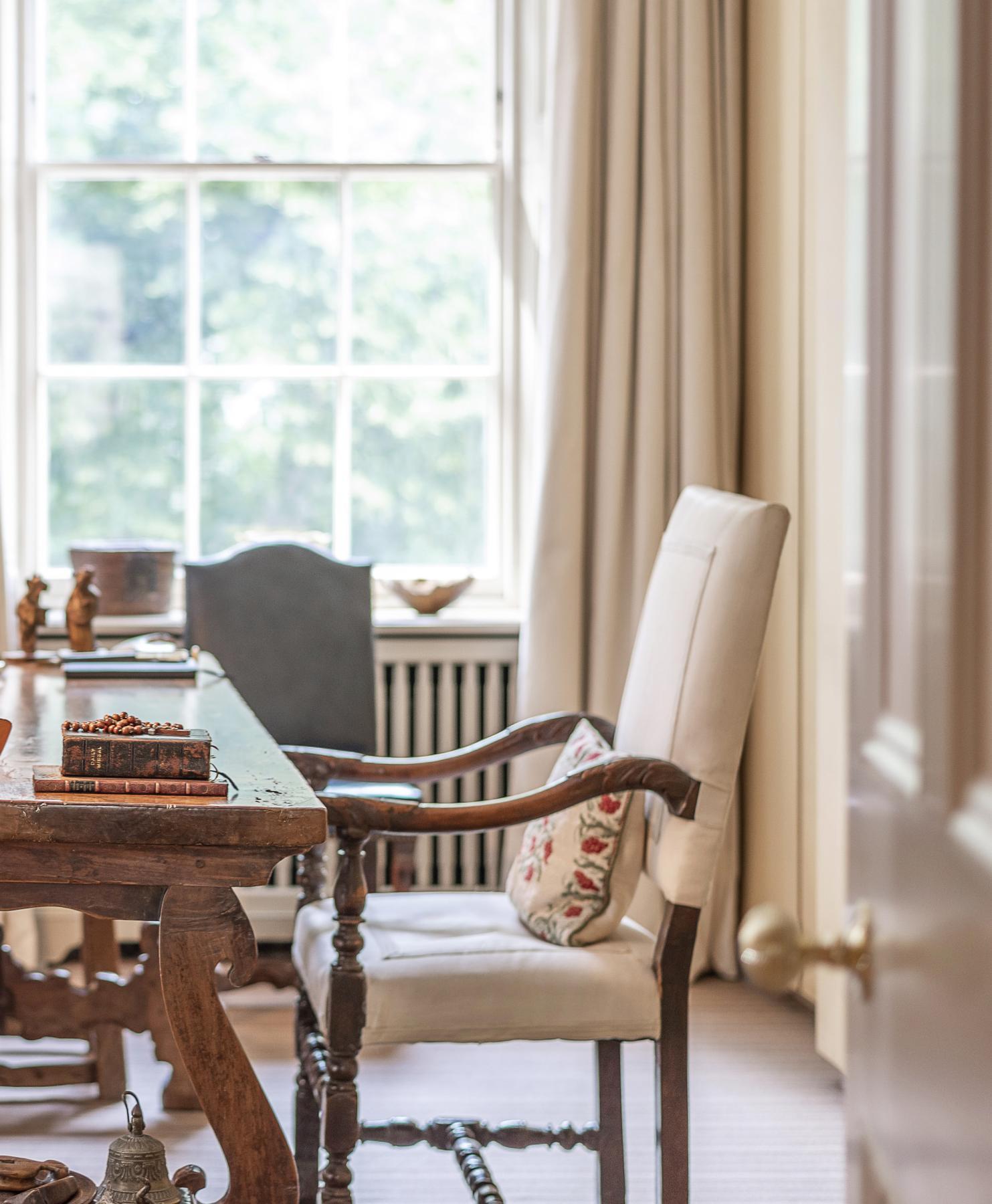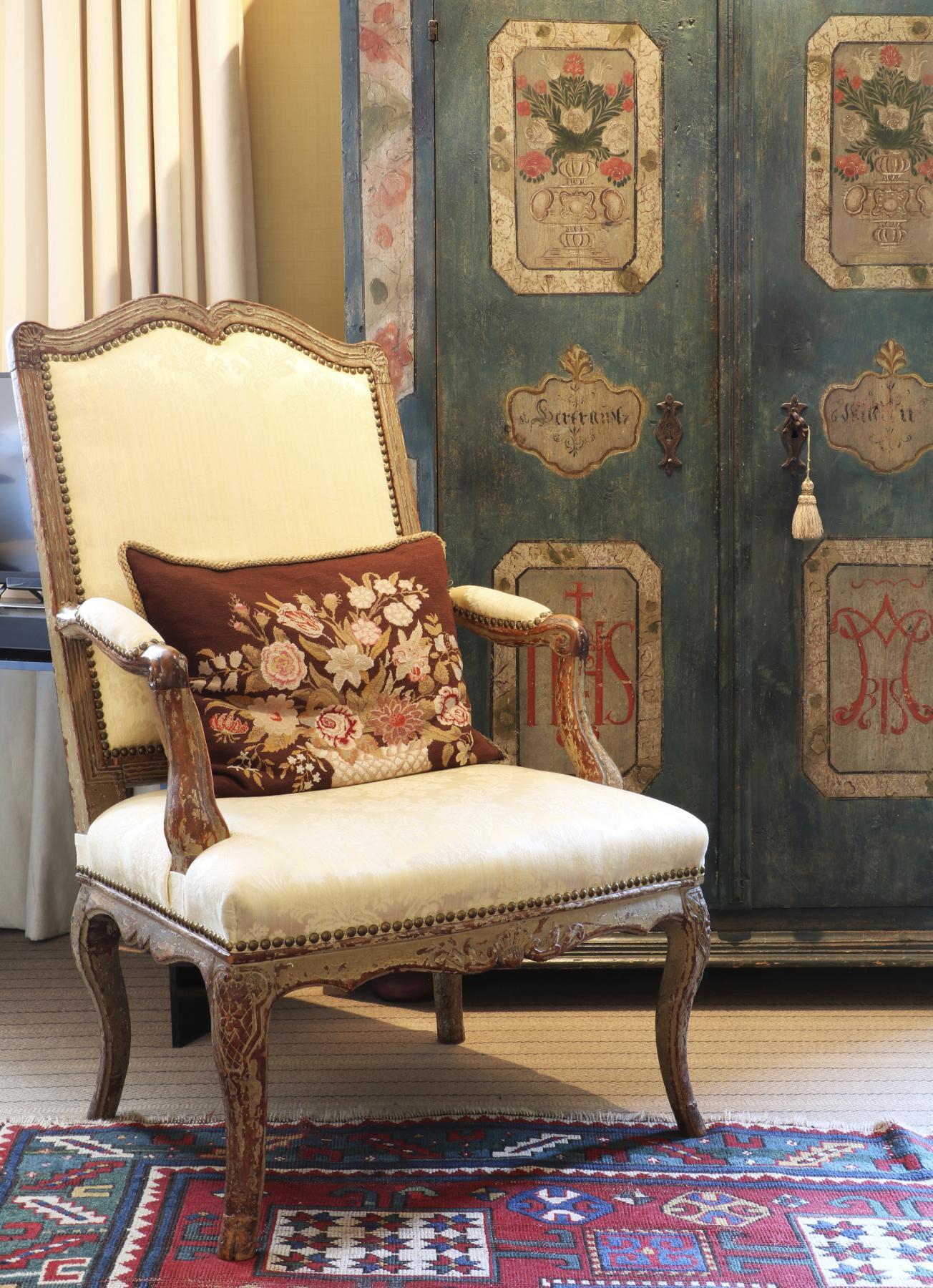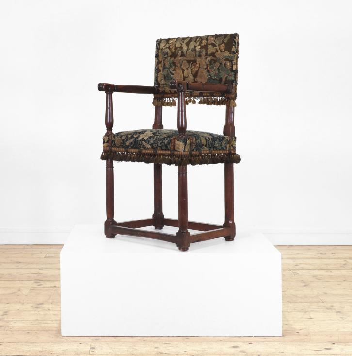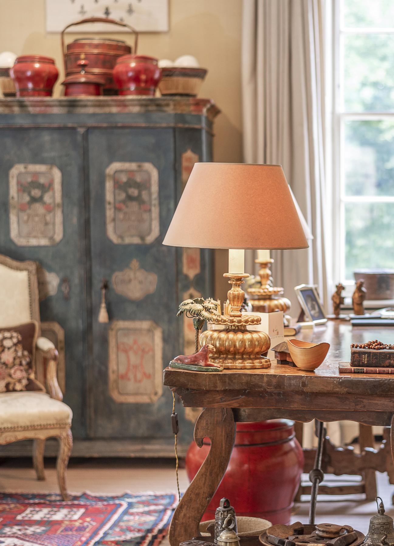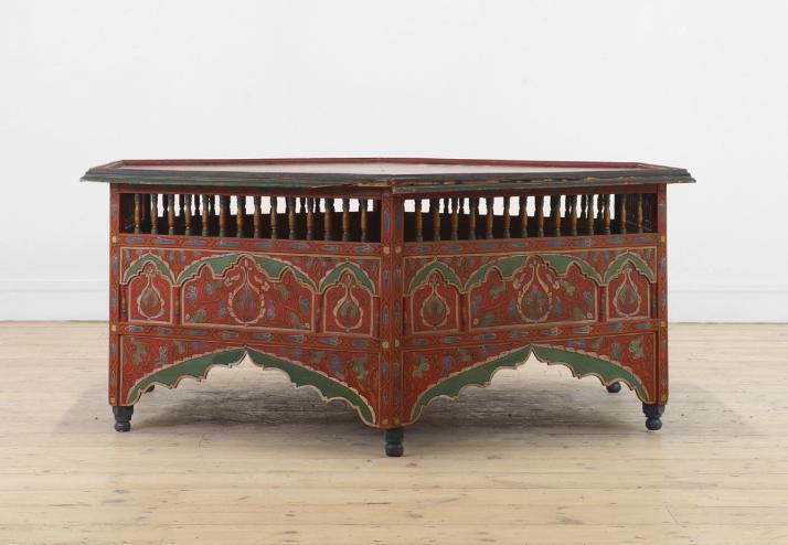 The carefully chosen furnishings in this sale radiate an appreciation of colour, pattern and texture, exemplified by Chinese lacquer and floral upholstery, punctuated by works of fine painting and furniture, such as a commanding portrait of a gentleman from the circle of Giovanni Battista Moroni and a French ‘Croix de Lorraine’ table formerly in the collections of the Metropolitan Museum, New York, and the American financier John Pierpont Morgan (1837-1913).