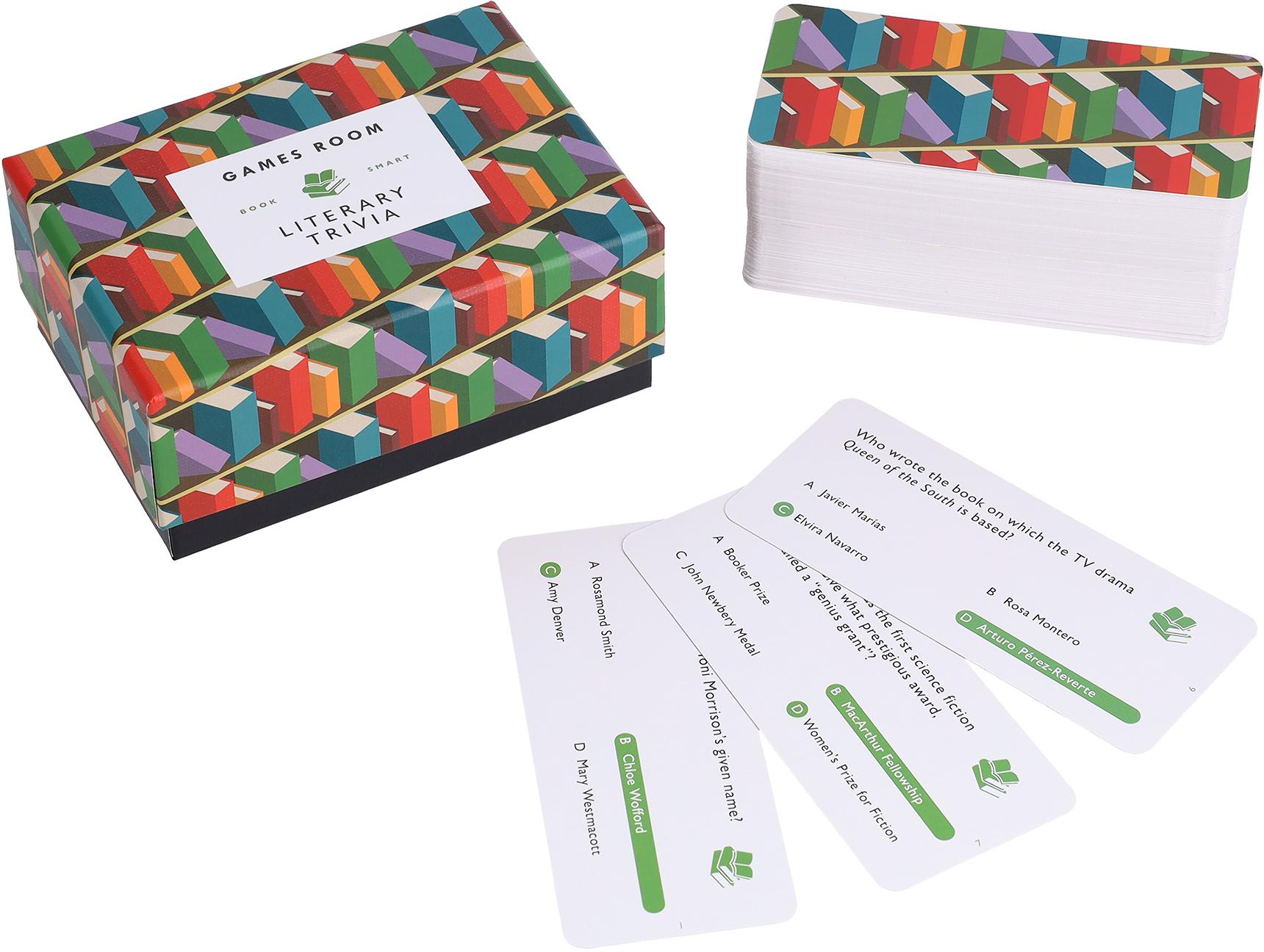 This eye-catching portable box holds 140 multiple-choice questions covering a range of classic and contemporary literature from around the world, including fun facts about authors, characters, plot points, adaptations, and more!