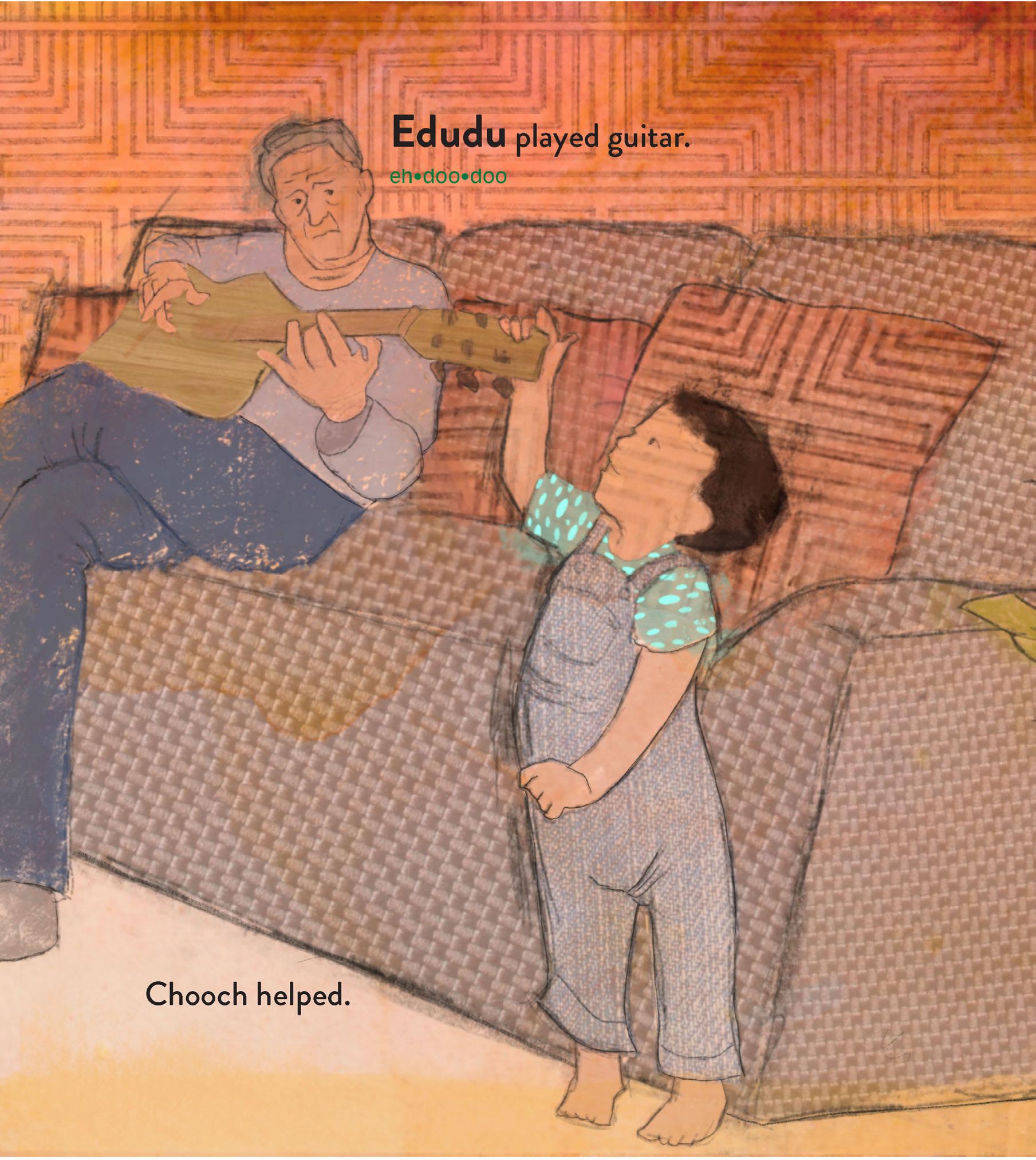 When Elisi paints a mural, Chooch helps. When Edutsi makes grape dumplings, Chooch helps. When Oginalii gigs for crawdads, Chooch helps. When Sissy tries to make a clay pot, Chooch helps . . .