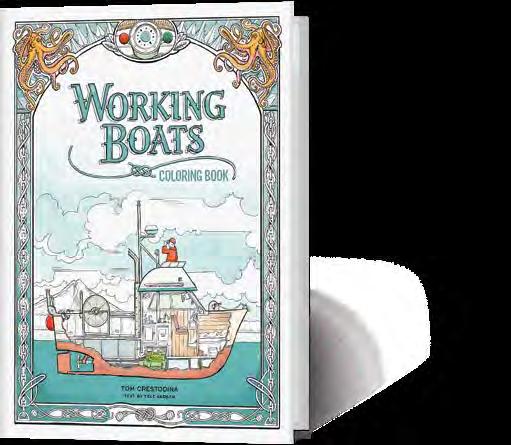 Step into the fascinating world of working boats with this fun and gorgeous coloring book filled with Tom Crestodina’s illustrations of intriguing boats and lively maritime scenes. Coloring enthusiasts of all ages will love bringing this world to life in full color. This coloring book features 31 full-page illustrations for coloring. On facing pages, the book also includes information about each of the drawings, with text by FisherPoet and essayist Tele Aadsen, paired with smaller illustrations, which also welcome coloring. 64 pages.