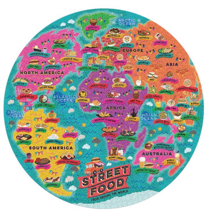 Rum-themed jigsaw puzzle. 500 pieces. Hand-illustrated artwork showing a variety of rums and cocktails. Includes poster guide and recipes. The puzzle has a low-gloss finish to minimize glare which we know is important to puzzlers!