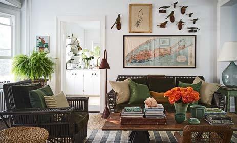 Lauderalsotakesreadersthroughherhomes,showinghowshe bringsthegardenindoorsthroughherdecor.Elegant oral wallpaperinthediningroomfeelschicandtimeless, oral drapesinthebedroomaretraditionalandluxurious,whileher contemporary oral-patternedchinabringsamodernand minimal oraltoherentertaining.