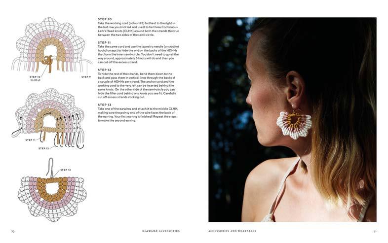 Learn how to knot, wear, and style 23 simple projects with Macramé Accessories, from necklaces to cushions, skirts, hair accessories, a lantern, and more. Fanny will show you how to master the all the knots featured throughout this book through clear step-by-step illustrations, charts, and instructions, demystifying this ancient craft.