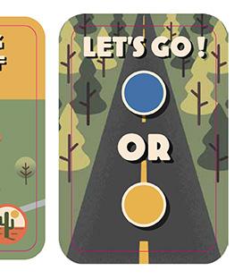 50 Adventure Cards, 50 Let’s Go Cards, 10 Life Cards, 10 Tour Cards, 10 van tokens, 10 action tokens, 5 wooden van meeples, 1 first player token, 1 gameboard, and instructions. Printed using FSC paper and soy inks.