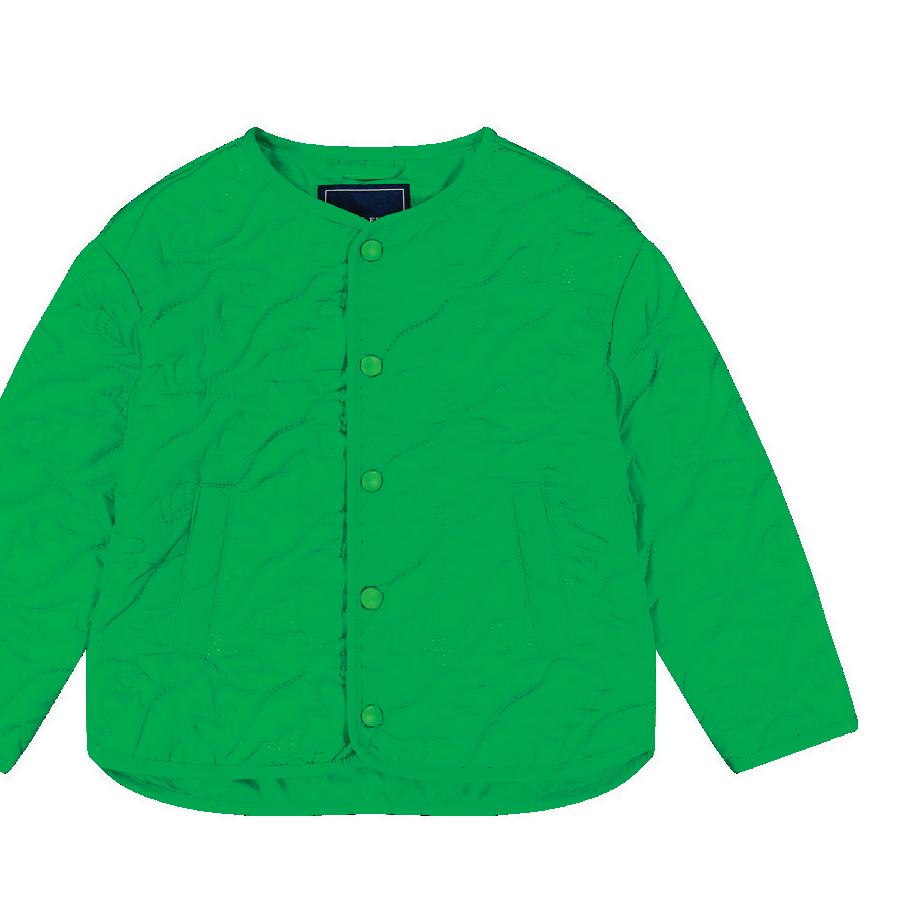 Violeta pairs an Appaman bathing suit with a Mila & Rose jacket, Wee Ones hair bow, Molo sunglasses and Floafers slides.
