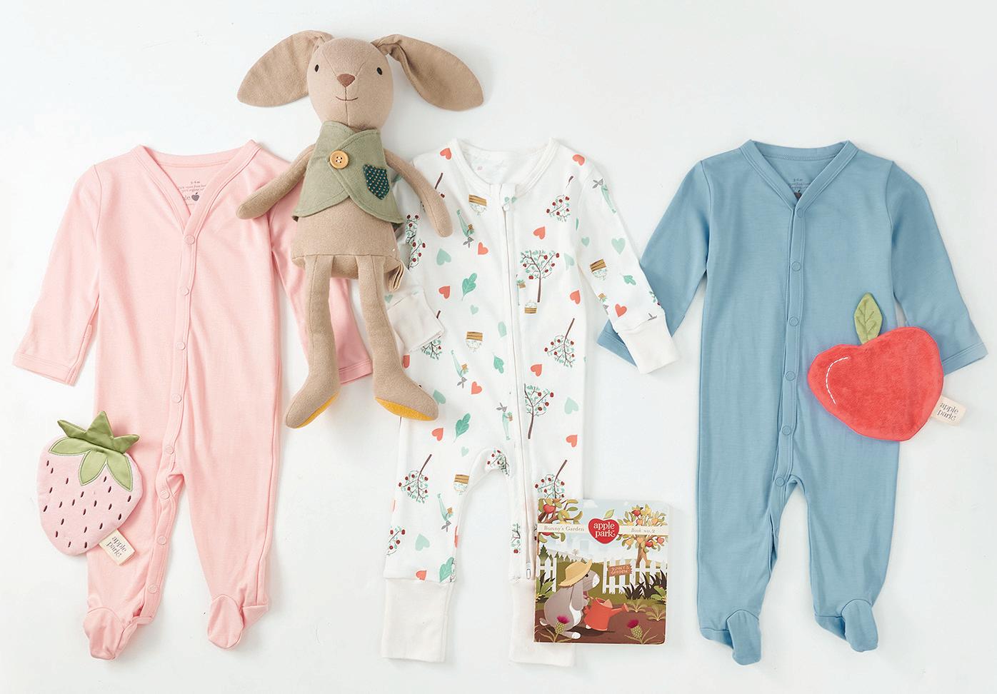 Apple Park Bunny’s Garden Collection is charming collection is inspired by Apple Park’s Bunny’s Garden children’s book. Apparel and toys are from the brand’s ForeverGreen year-round layette and sleepwear line. Also pictured are the non-toxic strawberry and apple crinkle blankies and 100% GOTS-certi ed organic cotton bunny named Luca. Retail price range is $12–$45; available to ship now from Apple Park’s PA warehouse. appleparkkids.com