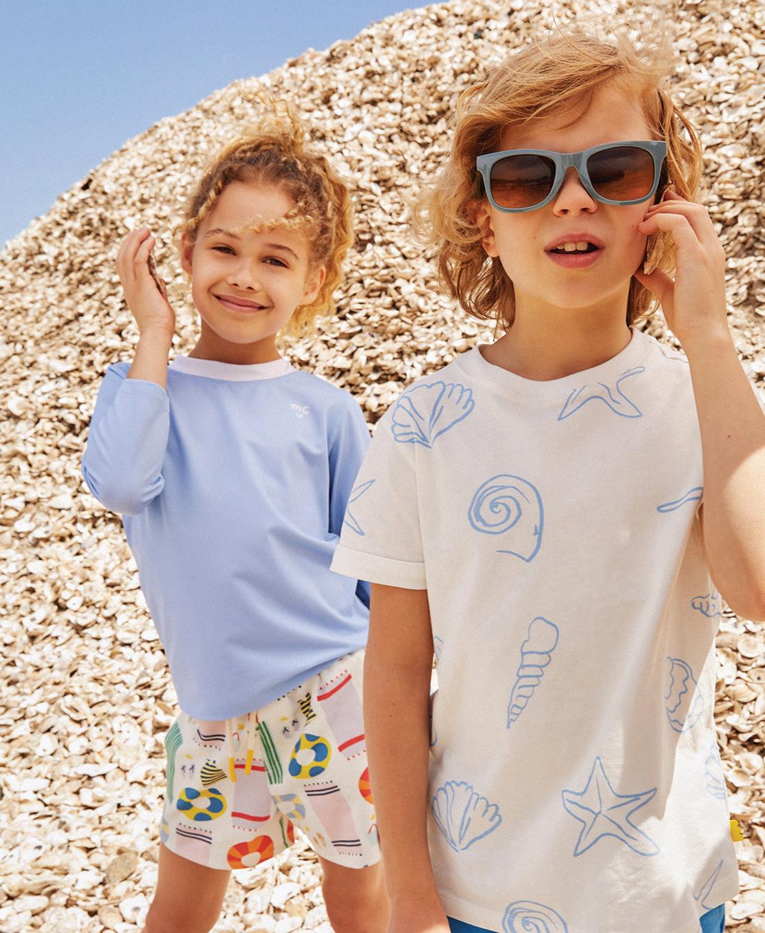 e curated assortment features Mon Coeur’s essential kid’s sweatshirt, T-shirt, and rashguard reimagined with shell-inspired prints, embroidery, and aquatic colorways. e collection retails for $40–$69, and 15% of proceeds bene t Billion Oyster Project.