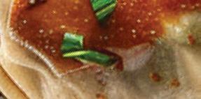 Fried Pork & Kimchi dumplings served atop a zesty cabbage slaw, finished with a tantalizing Korean BBQ drizzle. “ p.52
