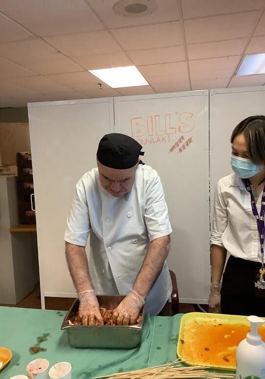 Parmi les gens qui vivent dans notre quartier de Willowvale, nous retrouvons d’ancien(ne)s couturier(ière)s, enseignant(e)s, bénévoles, agriculteur(trice)s, jardinier(ère)s et infirmier(ère)s. Nous avons aussi un monsieur qui se nomme Bill et qui a occupé plusieurs postes différents au cours de sa vie, notamment dans le secteur de la restauration. Notre équipe était ravie d’apprendre que Bill possède toujours une passion pour la cuisine et a pu l’aider à préparer des souvlakis pour les résidents, le personnel et les visiteurs de notre établissement le 24 mars dernier. Tous les profits réalisés par la vente des souvlakis de Bill ont été remis à notre conseil des résidents.