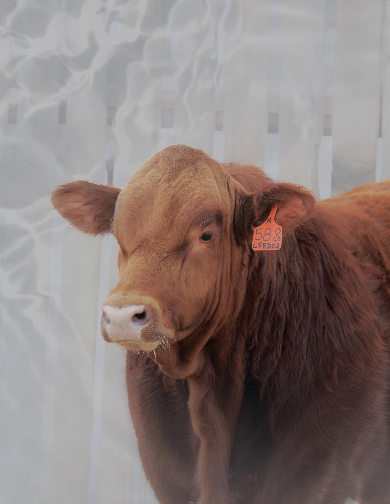 A solid red bull who we used lightly last summer but will not have calves until April 2025. A long-bodied, smooth bull we feel will sire some real good steers.