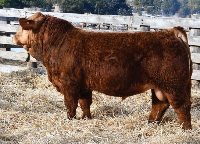 A moderate framed bull whose dam has brought many sons to this sale. 325M carries very eye appealing shape, muscle pattern and balance overall. Will not add milk, but daughters’ udder quality and suspension should be ideal. His dam, her full sister, and their dam all have beautiful udders. A group of steers sired by this bull would be packed full of meat and very consistent.