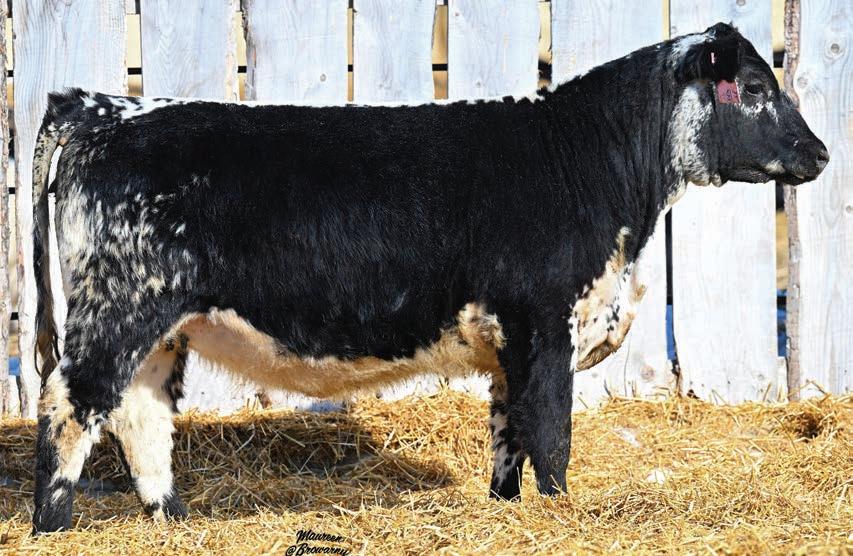 Nitro is off of one of our Spots N’ Sprouts Choreboy daughters. She always adds punch to her calves and this one is no exception. This unique pedigree, bred to the RH Kayak bull is something very genetically different in our offering.