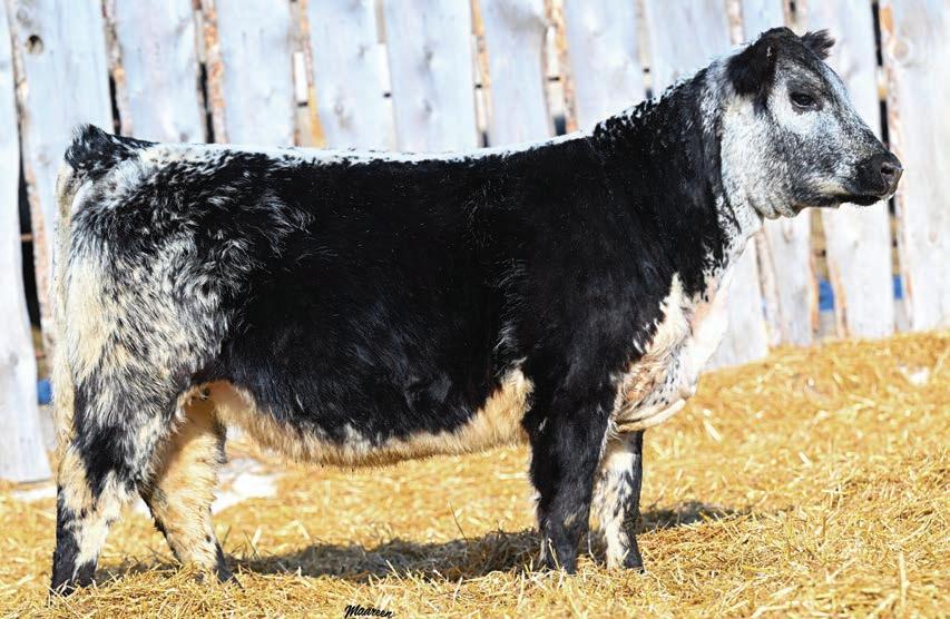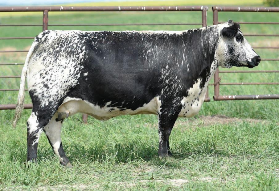 Looking to get into the Willow family? Her great grand dam was a many times champion, and her grand dam maternal flush sib was Ravenworth Willow 510H, Ms World Speckle Park! These females are always showstoppers. With correctness and femininity, we always appreciate the Willow females. This first calver did a great job on this fancy heifer.