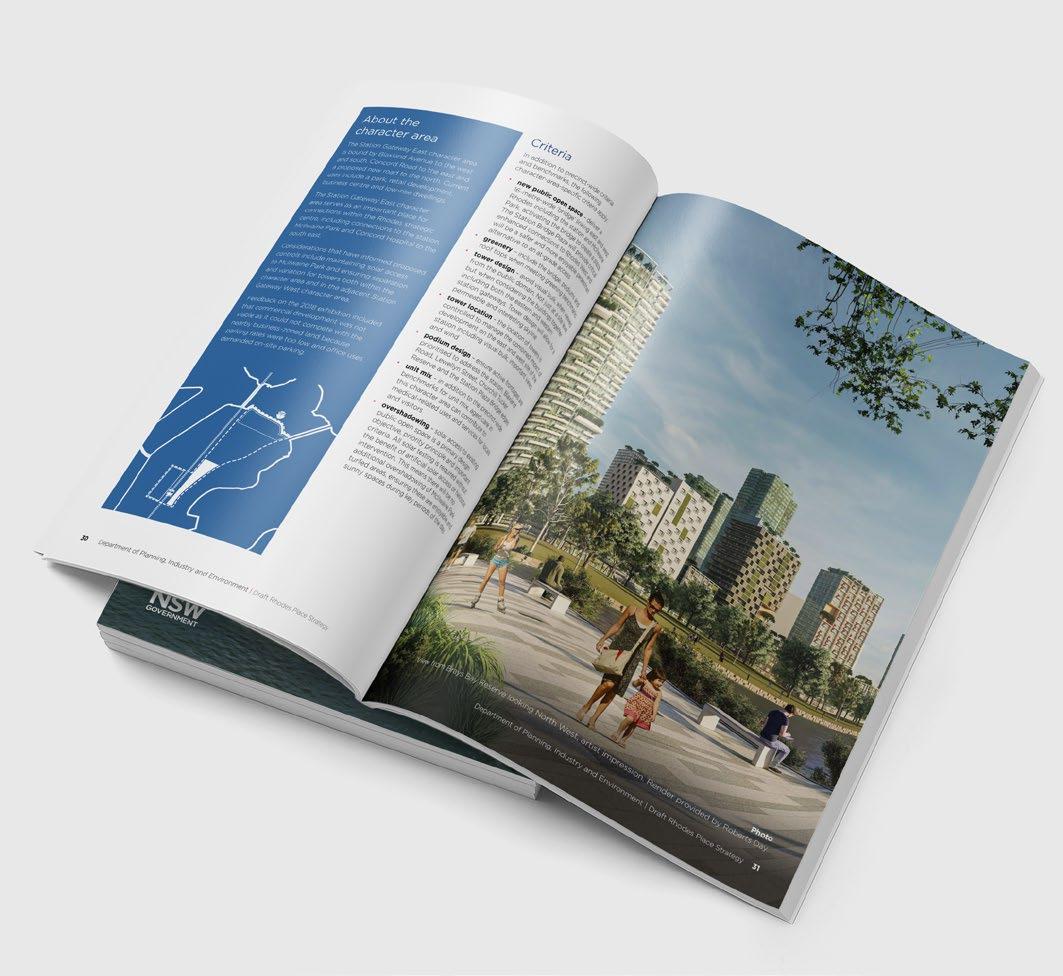 The video creative look and feel was then carried into the document to ensure visual consistency and engagement. As per the video, high quality imagery was a focus within the layouts to help residents visualise the scale of the Victoria Park vision.