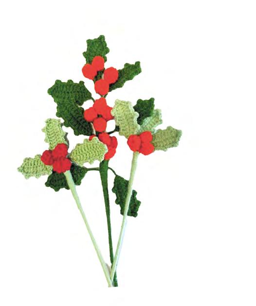 SPRIG-CROCHET-HOLLY HAND MADE CROCHET HOLLY SPRIGS 3PK INNER 12