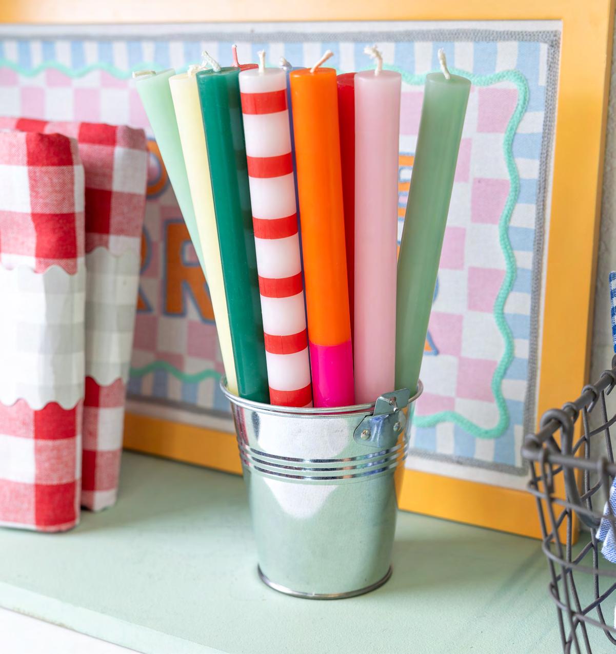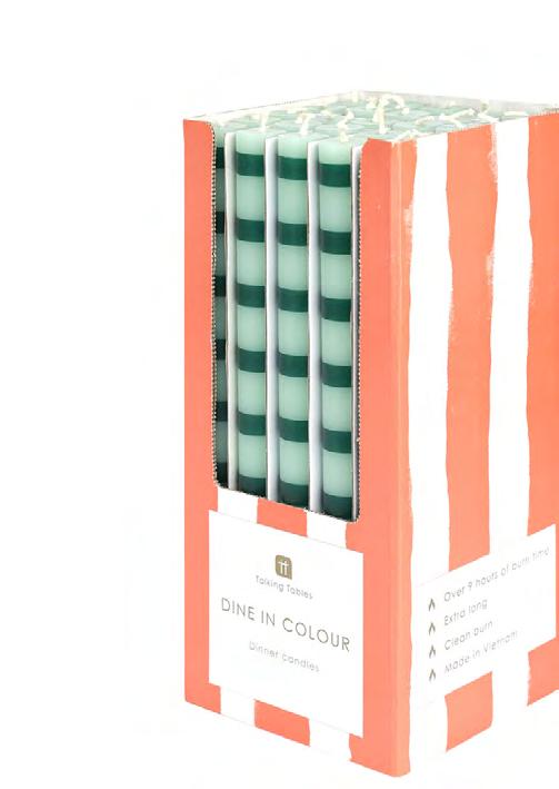 CSHOP-CNDL-DIN-GRSTR CANDLE SHOP, DINNER CANDLE, GREEN STRIPE, 28CM INNER 25