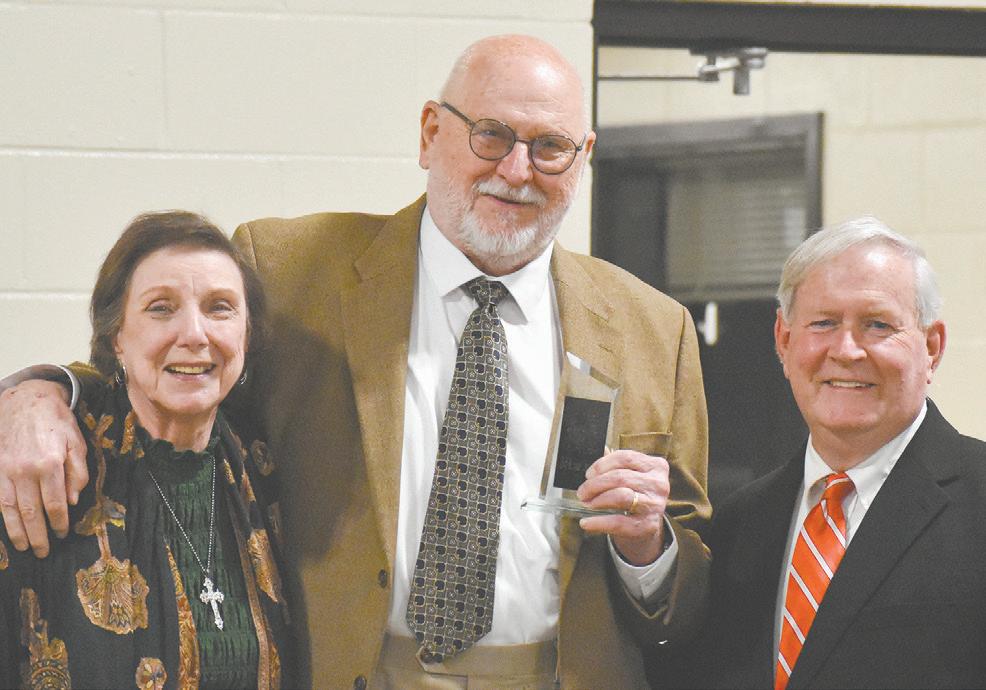 Tallassee Chamber of Commerce director Jerry Cunningham, right, presents the President’s Award to Rose and Bob Taunton.