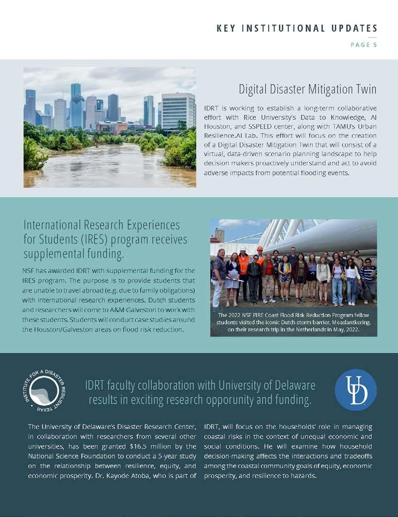 Our Texas A&M Foundation (TAMF) Galveston unit overall business plan and our Galveston unit corporate engagement business plan for the TAMF fiscal year 2024 (FY24) is in the works and will be finalized by May 2023. These plans incorporate the interests and goals of the campus provided by the COO and CAO. Major priorities identified for FY24 include summer sea term and transfer student scholarships, the sea turtle hospital, the Gulf Research Institute for Highly Migratory Species, and a holistic engagement of corporations promoting TAMUG as a leader in the Blue Economy. In addition, work is underway to close on a significant gift from Edison Chouest in FY24 in support of ship bridge simulator upgrades (key meetings and campus visits are currently underway).
