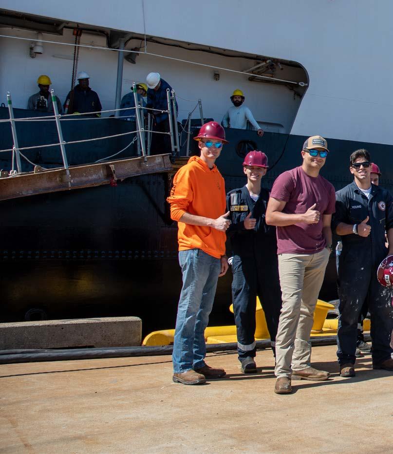 After 18 years of waiting for a mission capable training ship for the Maritime Academy it has finally come in! On April 16th two dozen cadets and professional crew acted as line handlers for the big ship. On April 20th the operational authority of TS Kennedy was officially handed over Texas A&M Maritime Academy until our new ship the TS Lonestar State arrives in the Spring of 2025.
