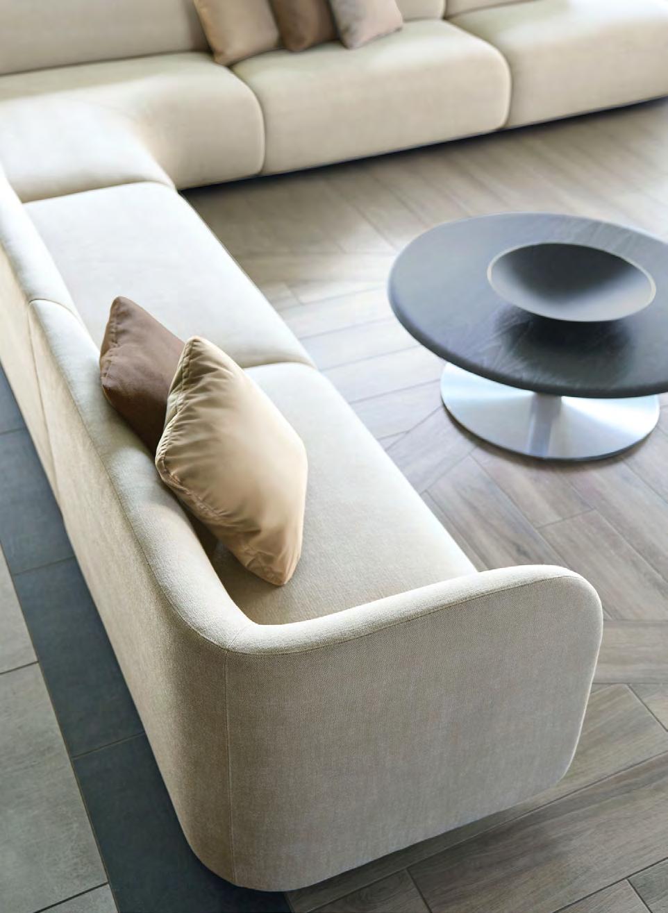 With generous cushions and organic shapes, this sofa invites connection and relaxation—promoting social interaction and sensory ease in shared spaces.