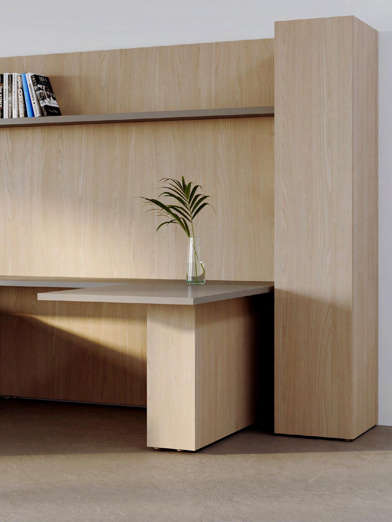 A clever credenza with a built-in bed for service animals, this design supports inclusivity and emotional support in the workplace—acknowledging every user’s unique needs.