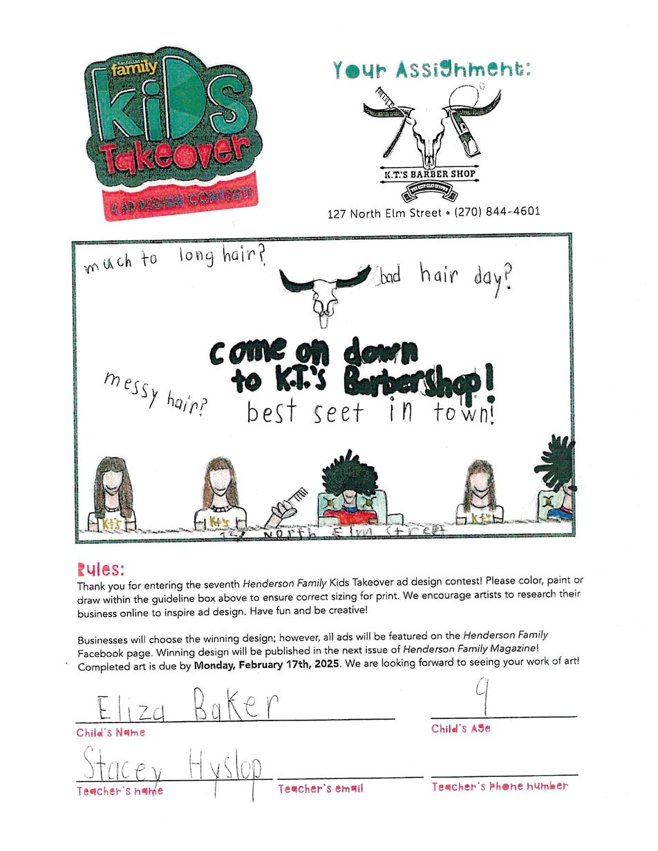 The seventh annual Kids Takeover Ad Design contest was a huge success! Kids from across the city and county completed the ad templates for their chance to win. Each business judged the entries and chose the winners. Thank you to all of the kids who entered the contest and for all of the businesses that participated: