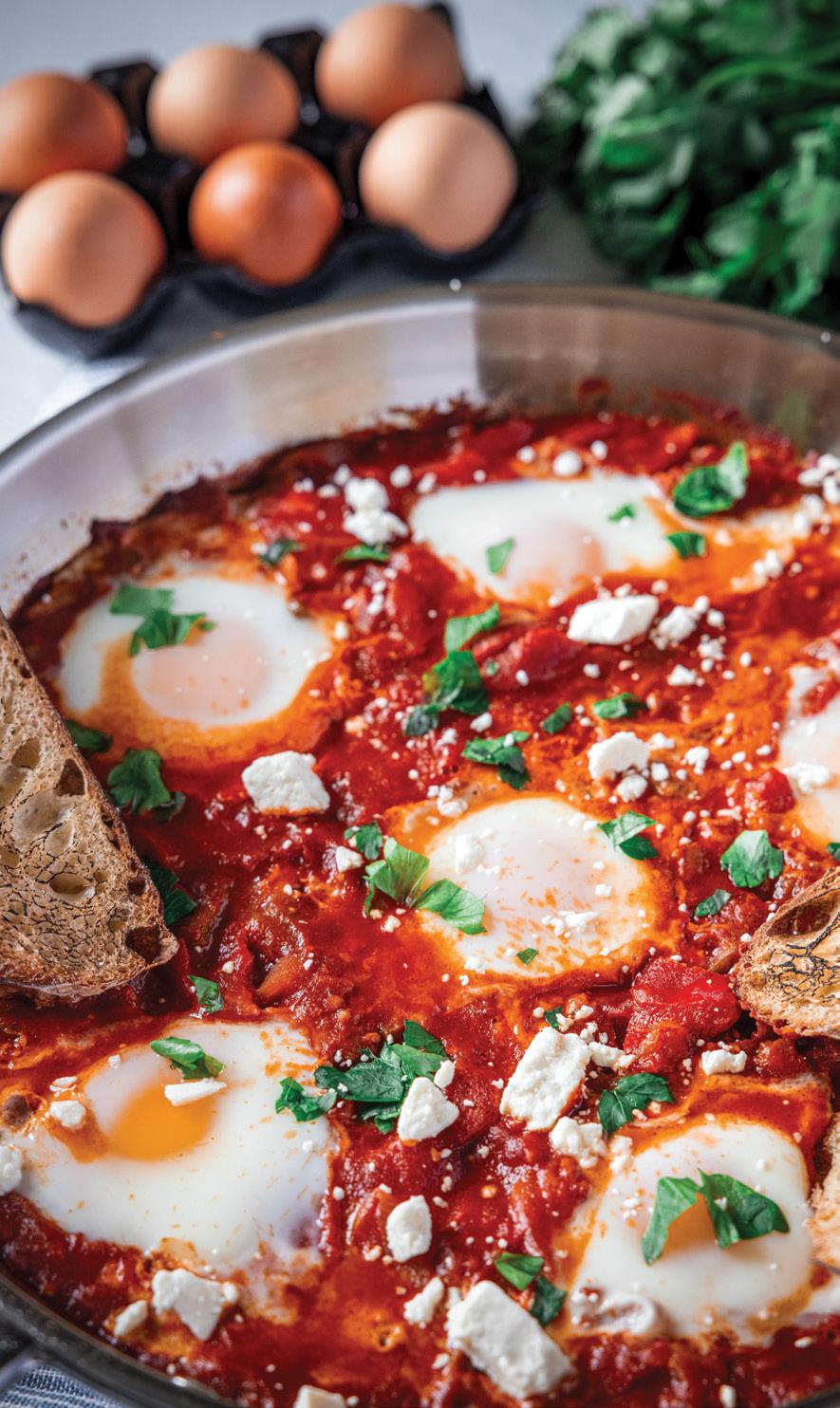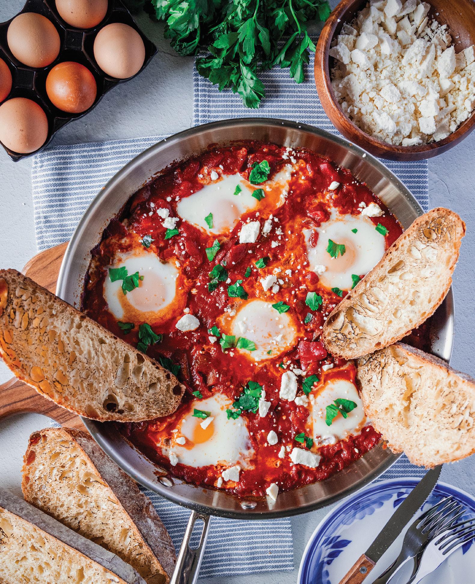 PLAINShakshuka is a North African dish made with eggs poached in a spiced tomato and pepper sauce. It is typically served with crusty bread or pita, making it the perfect dish for a hearty and filling breakfast, brunch, or dinner.