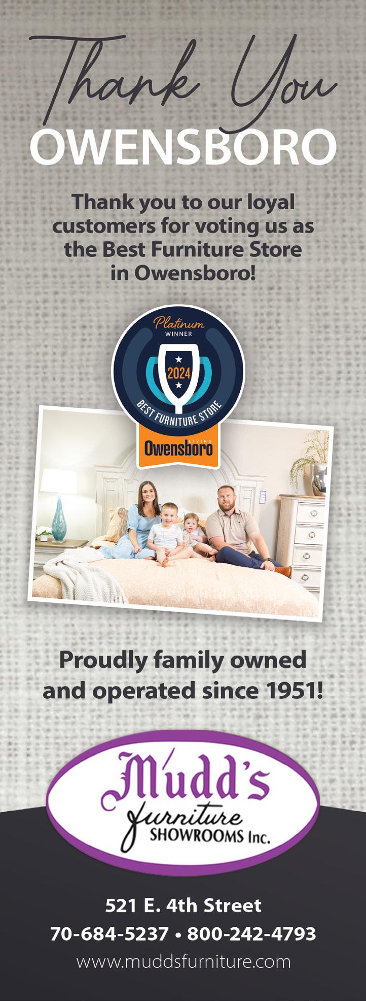 Owensboro Living is a FREE magazine because of community support. Thank you to the great group of businesses and organizations who advertise.