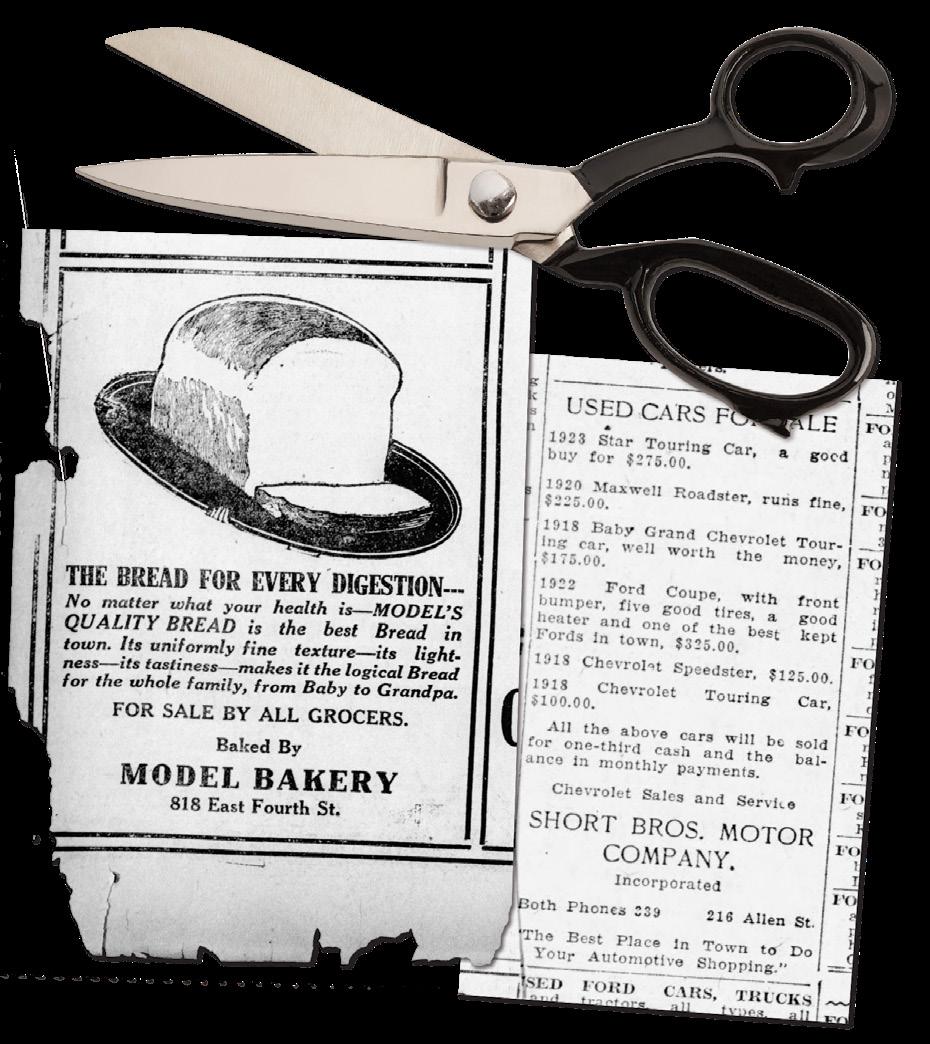 could choose from a 1918 Baby Grand Chevrolet Touring car, advertised as “well worth the money” at $175, or upgrade to a 1922 Ford Coupe “with front bumper, five good tires and a good heater.” This was “one of the best kept Fords in town,” available now for the bargain price of $325. These and other cars could be purchased by putting down onethird in cash with the balance in monthly payments.