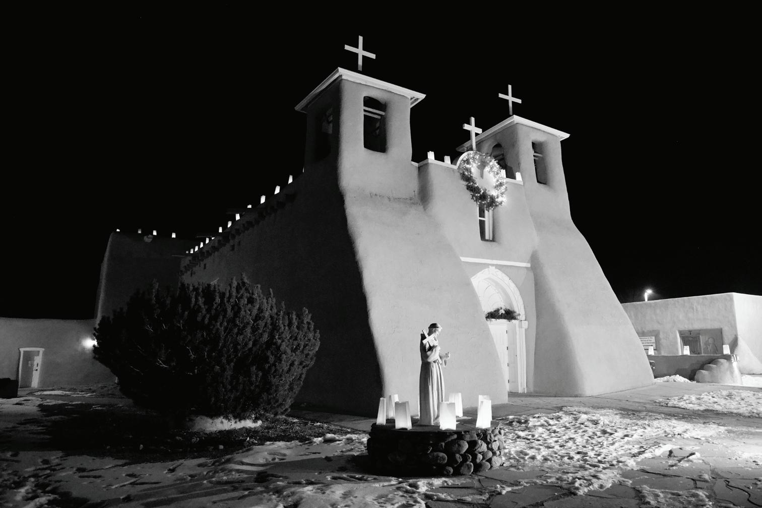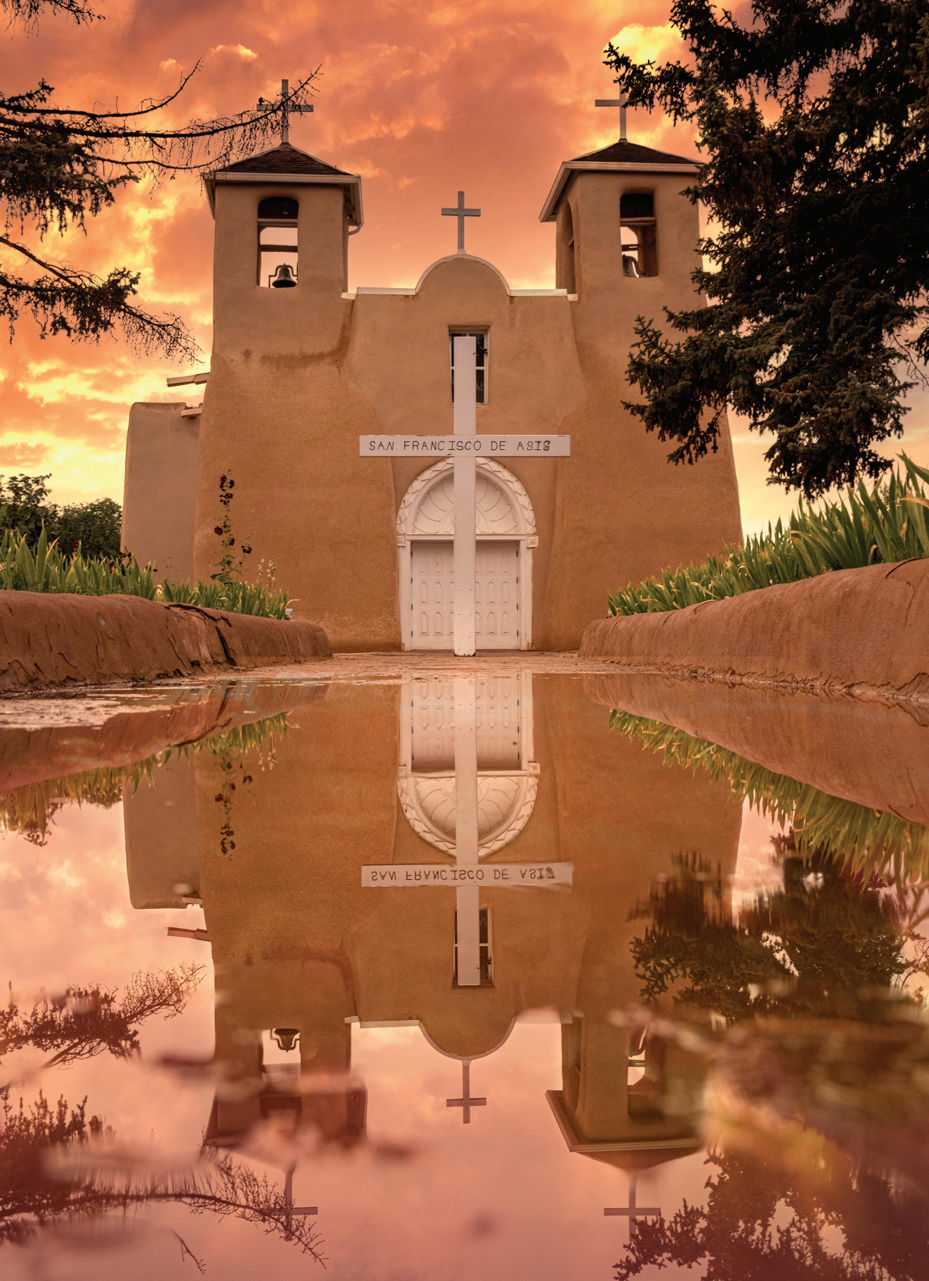 Everybody’s got millions of shots of the St. Francis church. It’s the most photographed church in America. Undeterred — and, he would argue, uninfluenced by others in his field — Rael looks for ways to put his unique stamp on this famous New Mexican landmark, waiting for rain to create reflecting pools at the church’s base, for example. “When I saw where it was reflecting in the water, I liked that a lot because it was different. At that time, I was doing a lot of reflection shots, so when it rained, I was booking it over there. That was planned, but sometimes