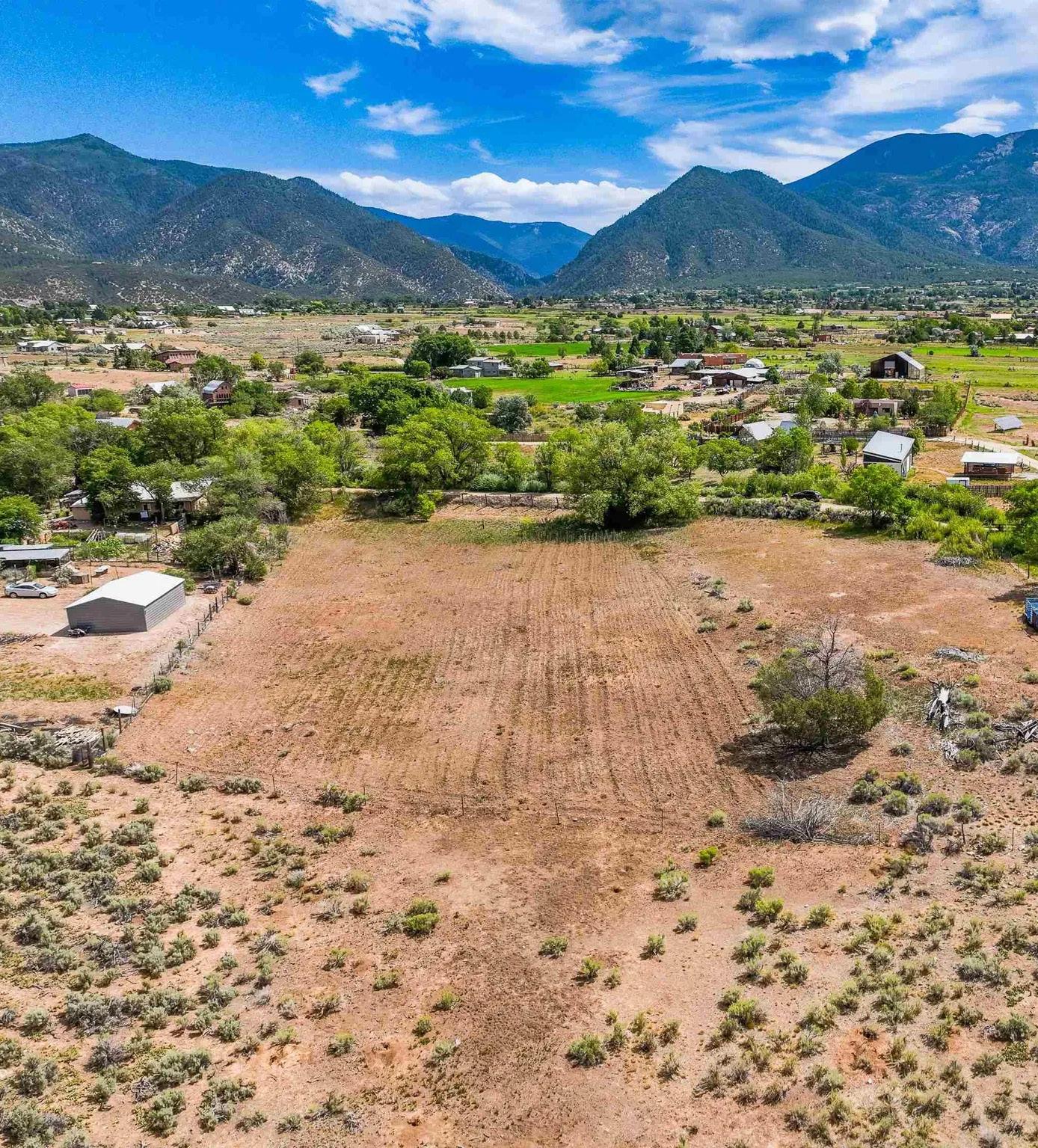RIVERBEND - This gorgeous 61-acre tract features access to the Rio Pueblo, magnificent 360-degree views, gently sloping terrain, quiet tranquility. See spectacular drone video at www.vimeo.com/703830616. This awesome tract could be one or several trophy home sites. Utilities at the property. Several wells already drilled. Only 15 minutes south of downtown Taos. Note: the property has been approved as a subdivision of 15 lots of 3-4 acres each. The entire 61 acres are available at $695,000 MLS 111959