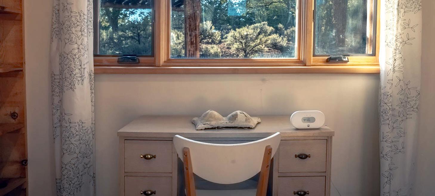Sue found Taos through a college interest in sustainable, off-grid building. “I had Earthships book one, two and three in my New York City apartment,” Hunt recalls.