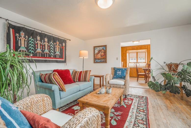 MLS#113603 $2,250,000 and Saltillo tile floors for authentic Southwestern charm. The kitchen features a vibrant blue counter along with ample cabinetry. Outside, your expansive property offers privacy, outdoor entertaining space, and high-desert beauty. Located in an established neighborhood, you’ll find peaceful solitude with easy access to Taos Plaza. This is more than a home; it’s the Taos dream. full kitchen, a spacious living room, and a separate office/ den. Plus, there’s an attached storage shed or workshop space. The stand-alone Casita (780 sq ft) offers its own 1 bedroom, 1 bathroom, a den/ office, and a separate kitchen. Imagine the possibilities: live in one and generate income from the other! The cozy layouts are perfect for in-town