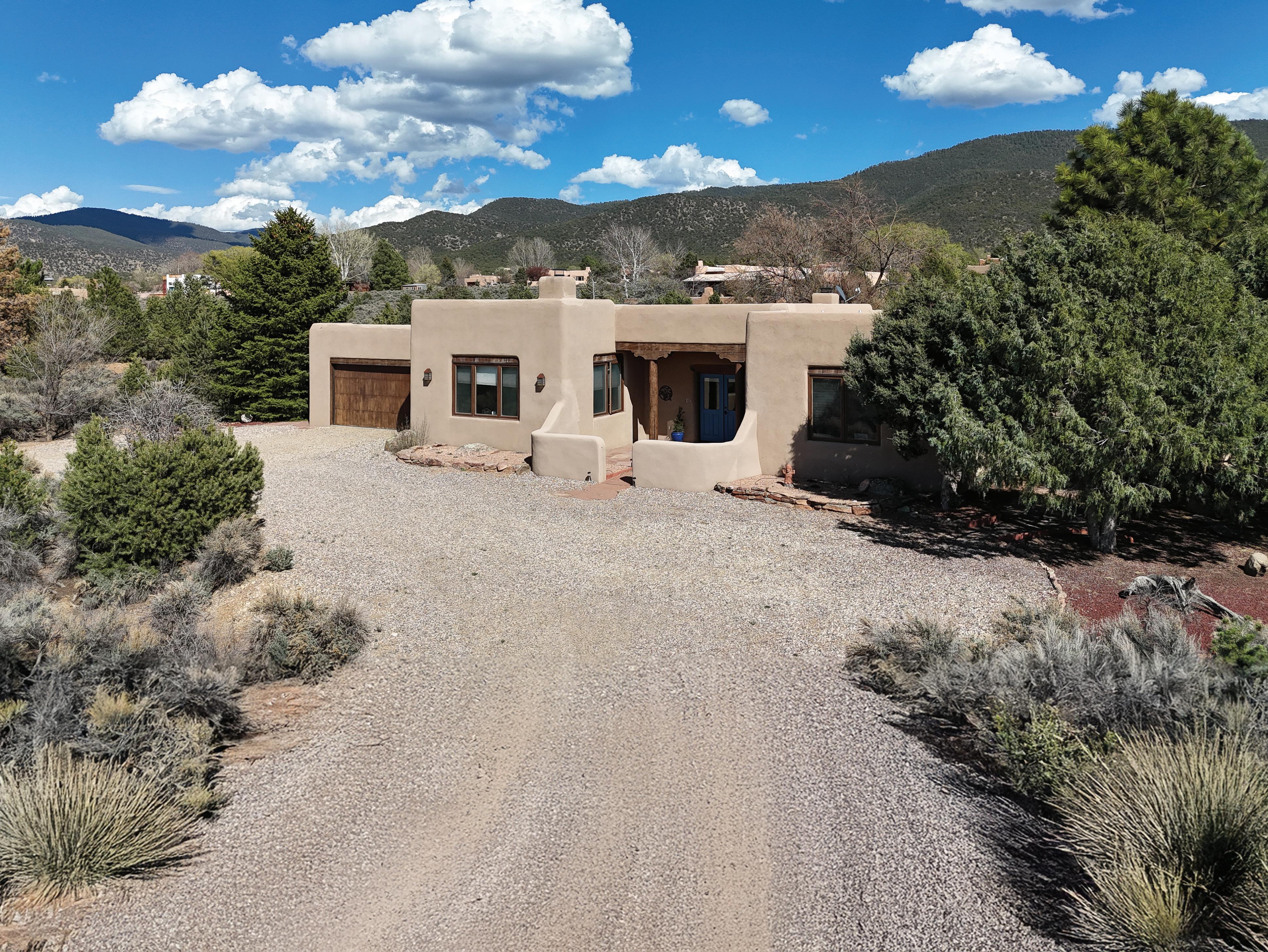 Casa Toda Vista has exactly what the name translates... a view of it all! Enjoy incredible panoramic views of the surrounding mountains and at night, you’ll see the lights of Taos twinkling below. This 1788 sq ft 2 bed/2 bath open floor plan home is bright and spacious, and very energy-efficient with tasteful Northern New Mexico touches. A large sunroom/office/studio/gameroom with a loft leads to the backyard. The fenced-in back yard has a 240 sq ft insulated art studio/office that could double as a guest quarters. The front yard is an oasis full of mature landscaping and trees. Compare with other homes in this price range, and you will see that Casa Toda Vista has it all in terms of value as well.