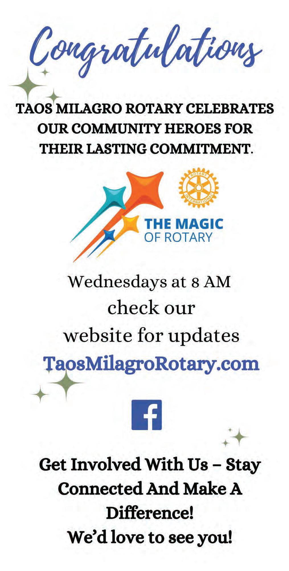 Taos County is a better place to live and work because of your efforts. The Taos County Chamber of Commerce extends our gratitude for paying it forward to Taos County communities and beyond.