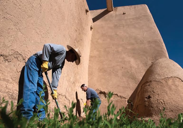 Tafoya is just as passionate about another key component of Northern New Mexico’s Hispano culture: adobe. “That’s what I do: I’m a builder,” he said. As an enjarrado — someone who has mastered the art of building with earth, water and straw — Tafoya estimates he’s constructed around 200 adobe homes in the last 45 years. Every third week of June, Tafoya and fellow enjarrados erect scaffolding around the historic San Francisco de Asis Church in Ranchos de Taos to refresh the 200-year-old building’s mud plaster. For the church, Tafoya says they use a special dirt called tierra vadita, which is nearly white in color and can be found around nearby Llano Quemado.