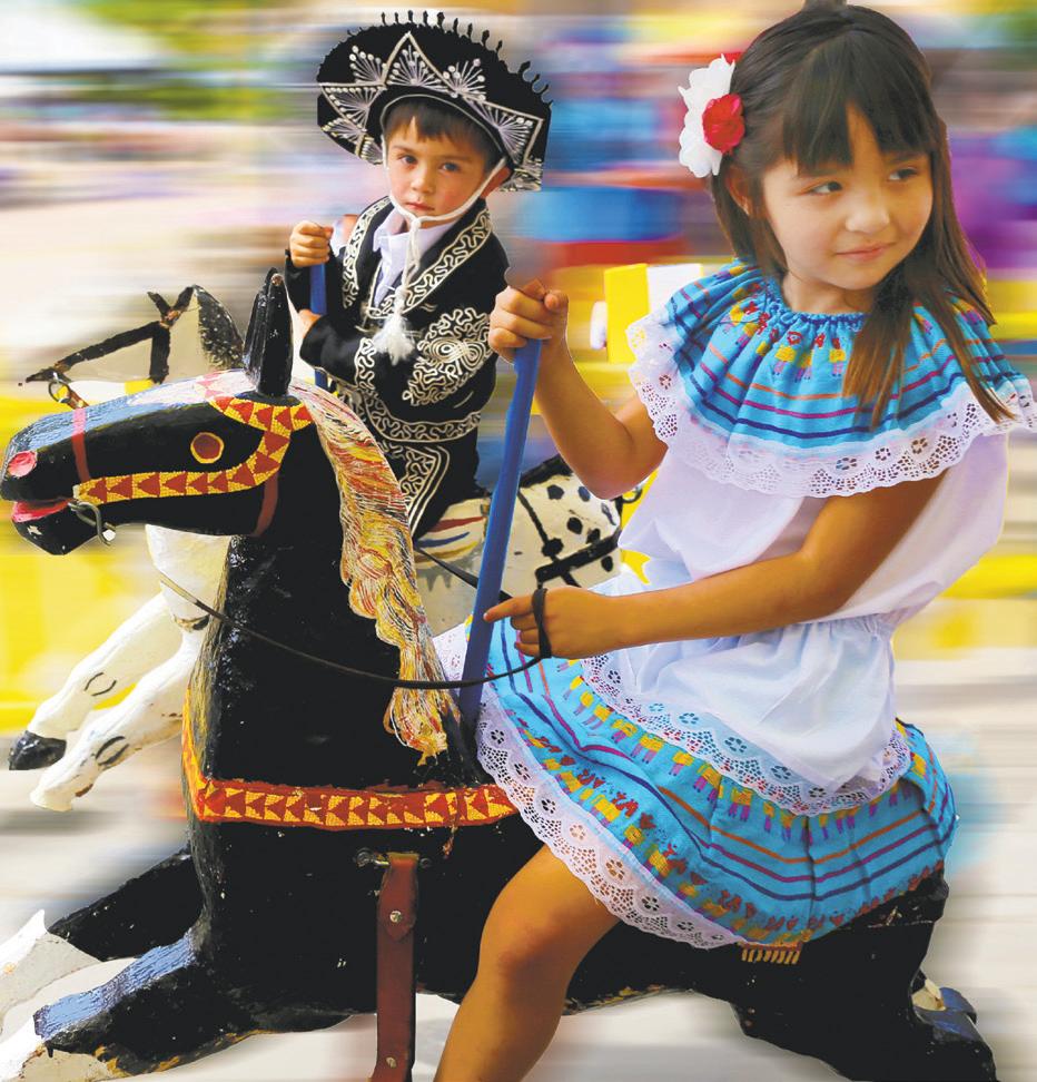 TOP: Unidentified girl rides the Tío Vivo carousel at Taos Fiesta 1940; photo by Russell Lee, courtesy Library of Congress.
