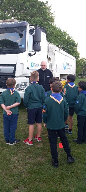 One of our Transport Account Managers held an Engagement evening with Langford Cubs. Wayne Woodcock spoke about road safety and took along one of our Hauliers with his truck for the children to look around the safety features and what it is like sitting in the cab.