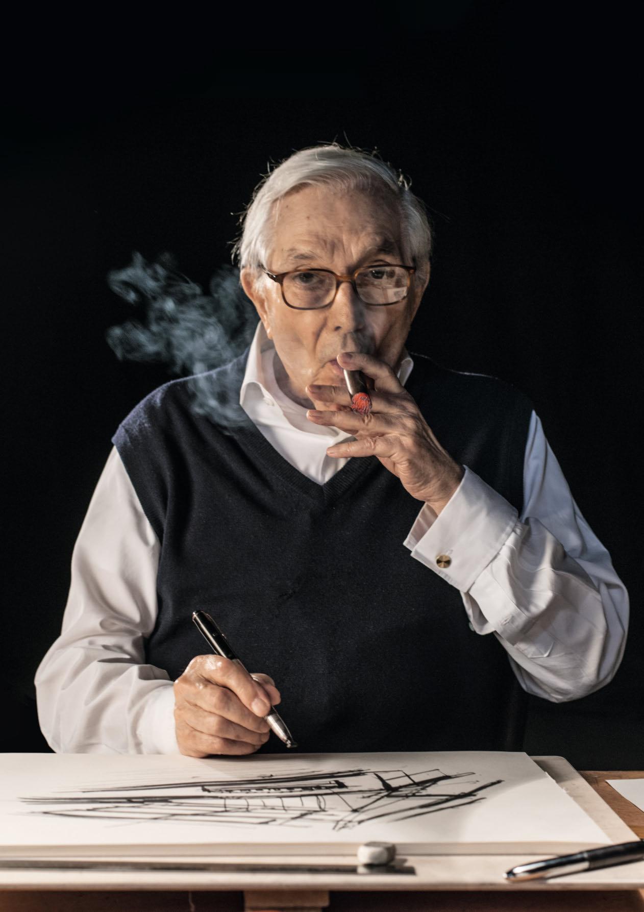 The Spanish designer sketches while holding a last. Michael Roberts, 2007. © Michael Roberts / Maconochie Photography