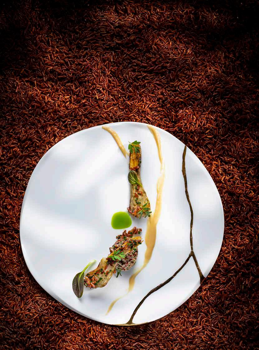 本期的主题故事是「五谷丰登」,向 中国的传统主食与地球上各种独特的稻米品 种致敬。TK 的 Ocean Table 行政主厨 Jaakko Sorsa 创造了五道全新料理,将常见的稻米 谷物与反差强烈的丰富食材相互结合,让日 常食材摇身一变成为独一无二的料理。