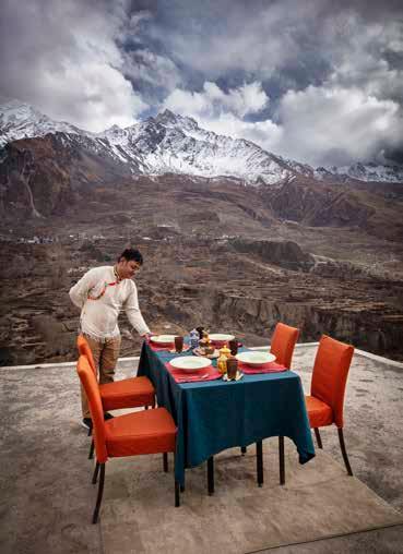 Our exploration of Nepal in this issue doesn’t stop with Lower Mustang. TK Director of Photography David Hartung contributes his vivid impressions, in both words and pictures, of the people, places, and traditions he discovered in the ancient city of Bhaktapur. We also showcase art from the first edition of the Kathmandu Art Biennale, share the designs of a pioneering rug-maker who combines modern designs with ancient craftsmanship, and make a final memo rable journey into the hills outside Kathmandu to a serene resort that offers invigorating wellness programs, nourishing meals made from local ingredients, and astonishing views of Mount Everest.